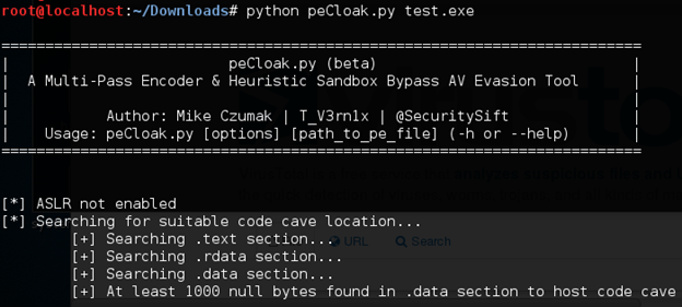 Now, lets run this using peCloak.py script.