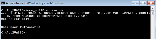 Figure 2: output of the modified wce.exe
