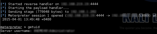So we decide to use the Meterpreter shell to dump out the password hashes. To get a Meterpreter shell, we will create a malicious Meterpreter payload and set up the handler on our attacking system. We now host this malicious Meterpreter payload on our attacking system's webserver and call the file via the browser of the exploited system.