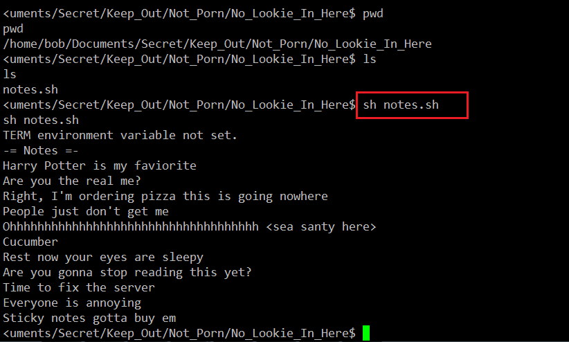 - Used the << ls –a >> command again to view all the files in the ‘Bob’ folder. There was a file “old_passwordfile.html”.