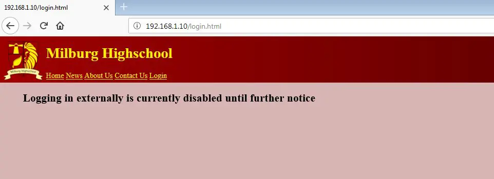 On the homepage, we can see that there is a login option available. So let’s click on the login button to explore the application further. However, when clicking on the login page, the application shows a message that “Login is currently disabled.”