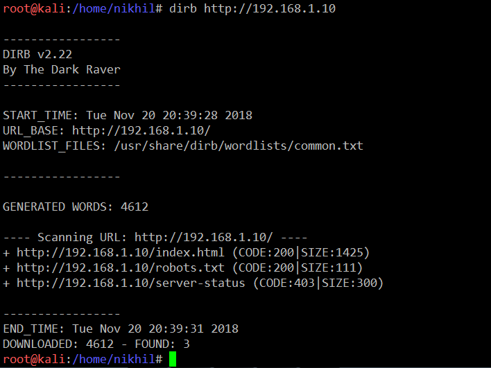 Command Used: << dirb http://192.168.1.10 >>