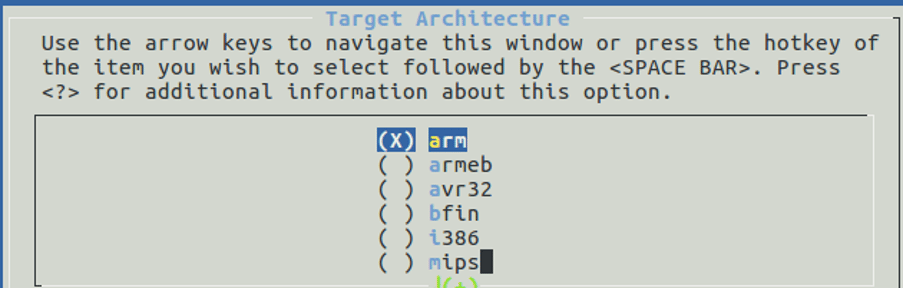 After getting the right version of Buildroot from this repository, the command "make menuconfig" must be prompted, and the most appropriate options chosen.