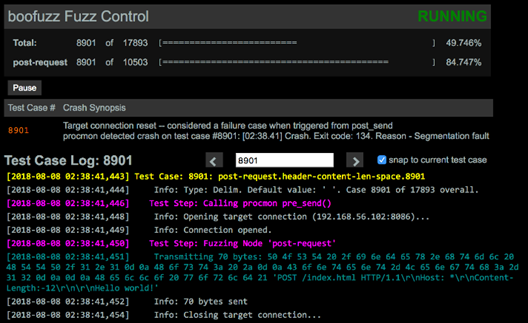 Figure 5: Boofuzz dashboard control