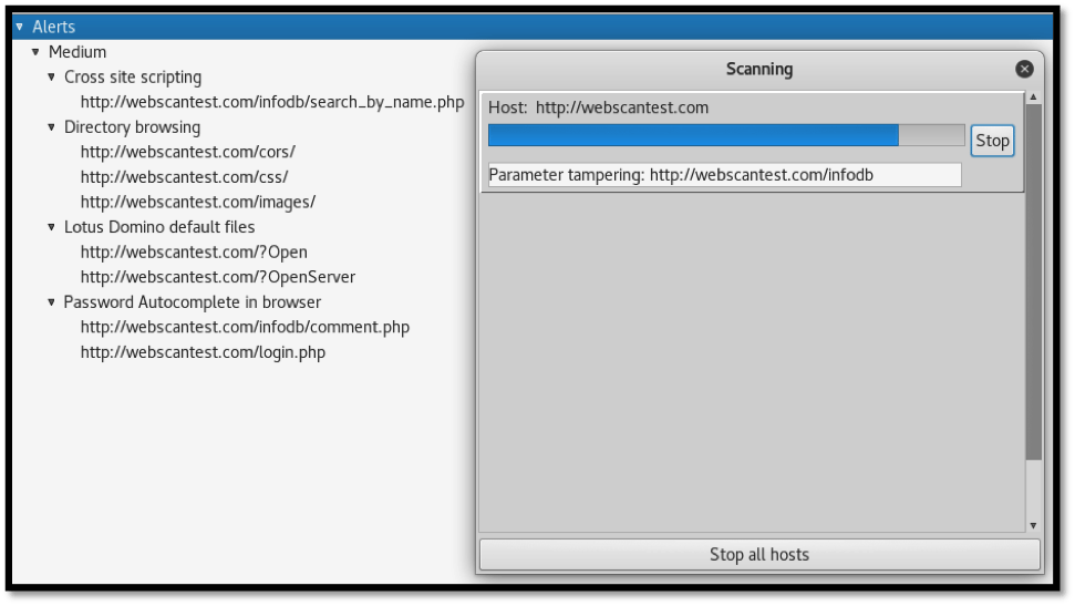 Once the spidering process is complete, we can begin the scan. Paros then attempts to discover vulnerabilities throughout the website.