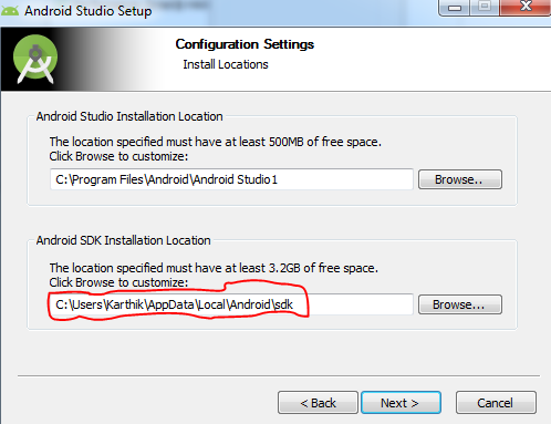 Verify the SDK location is changed to something easily accessible, for example, the same location as Android Studio installation location itself.