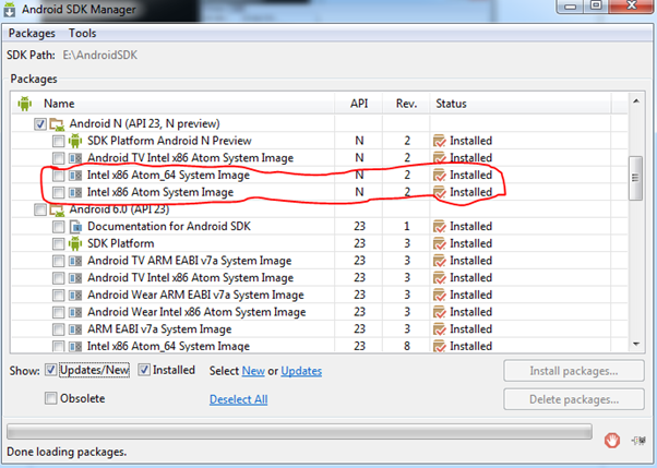 Tip: If there is any error regarding: "CPU acceleration status: HAXM must be updated (version 1.1.1 < 6.0.1)". Install, it from Android SDK Manager by checking Intel Emulator Accelerator (HAXM installer).
