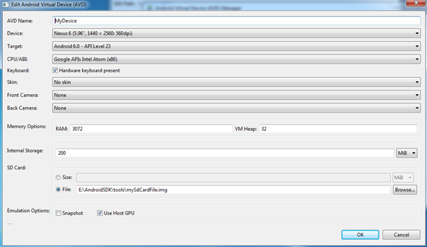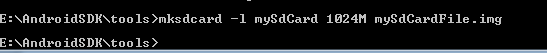 Tip: Use mksdcard tool to create memory card for the emulator with the following command by opening the terminal in the tools folder of your sdk: