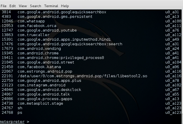 Open a new terminal and type the above command to generate an apk file which will be distributed to the victim. Advanced attacks can be pursued by binding these files with legitimate APKs, which is beyond the scope of this lab.