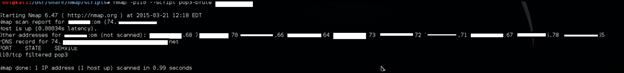 Our bad luck. Port is filtered. So let's trace the program. I am thinking as a reverse engineer, so I put a debug (-d) option to see more (see the above picture). It seems that there is no response from victim though the port is filtered. So use ninja skills to attack.