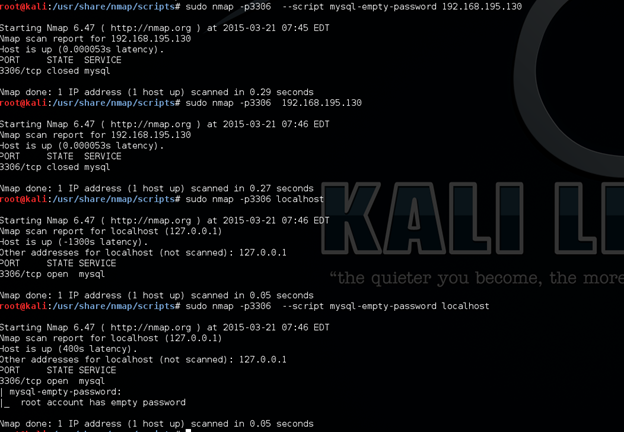 sudo nmap --script mysql-empty-password 192.168.195.130