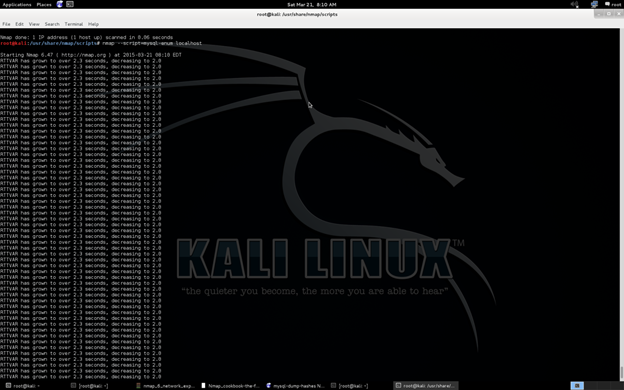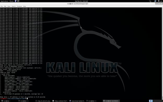 In cases of web applications where storing, editing, updating, and deleting in an information database is used. During pentesting for database we can use Nmap NSE for exploiting and securing the database in a real time scenario. After getting root access, what can we do, or is it possible to attack the database from outside? These questions can be easily answered by the following way.