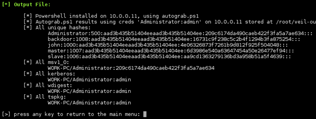 Also note that one article is not enough to cover all the modules of Veil-Pillage. At the time of this writing, there were 60 modules. Many of the useful modules have been discussed here, but I have faith that you will try others if and when needed or for knowledge purposes.