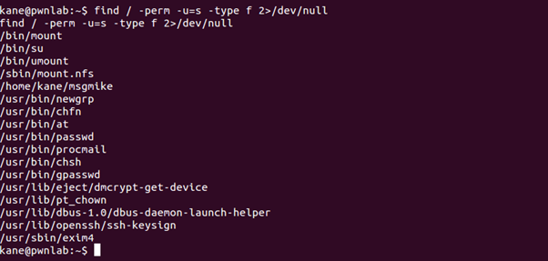 - List the SUID files. Read more here: Common Linux Misconfigurations - InfoSec Resources - InfoSec Institute