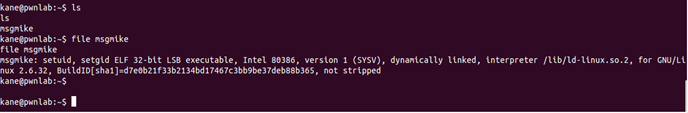 Currently, we are logged in as user "kane". Unfortunately for us, the OS Release wasn't vulnerable to any documented attack. At the same time, none of the kernel exploits helped. Moreover, the SUID files were looking fine except a file located under Kane's home directory named "msgmike."