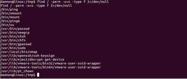 Here, we have listed all the SUID files. Can you notice something strange? Why would Nmap have the SUID flags? Let's see.