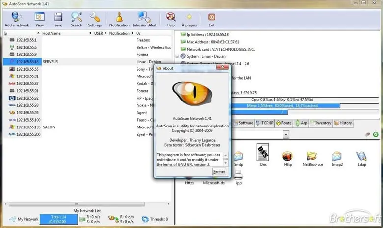 - Automatic detection of known operatic system (brand and version), you can also add any unknown equipment to the database