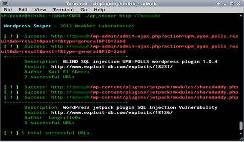 WordPress Sniper is an automated vulnerability finding tool for WordPress CMS (content management system) which allows you to utilize the information of exploits for the said CMS gathered from Exploit-DB through the use of the Scrape script, a tool buddy of wp_sniper which can also be found under the CMS directory.
