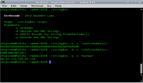 StrEncode is an XSS (Cross Site Scripting) String Encoding Tool which allows you to decode or encode a string URL. It can also do ASCII Encoding for String.fromCharCode().