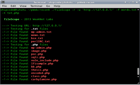 FileScope is a web server reconnaissance tool that allows you to use your own customized wordlist file to brute force web directories and files which is useful for information gathering. You can also recursively scan the directories of the web server by using the option -r.