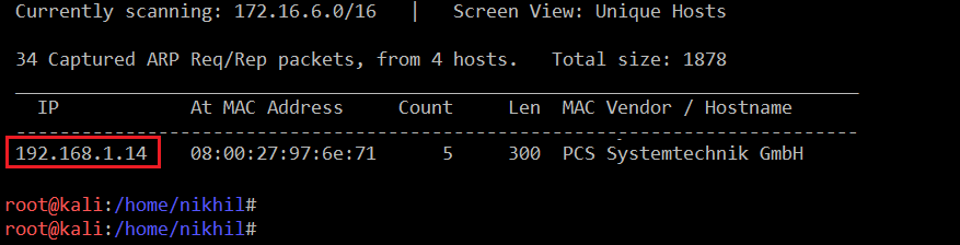 Command Used: << netdiscover >>