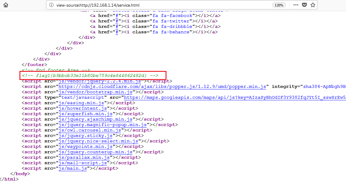 While exploring the document root folder in the target machine as user “Michael,” I found another flag in the “service.html” file which can be seen in the following screenshot.