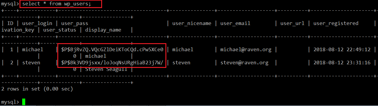 Command Used: << select * from wp_users; >>