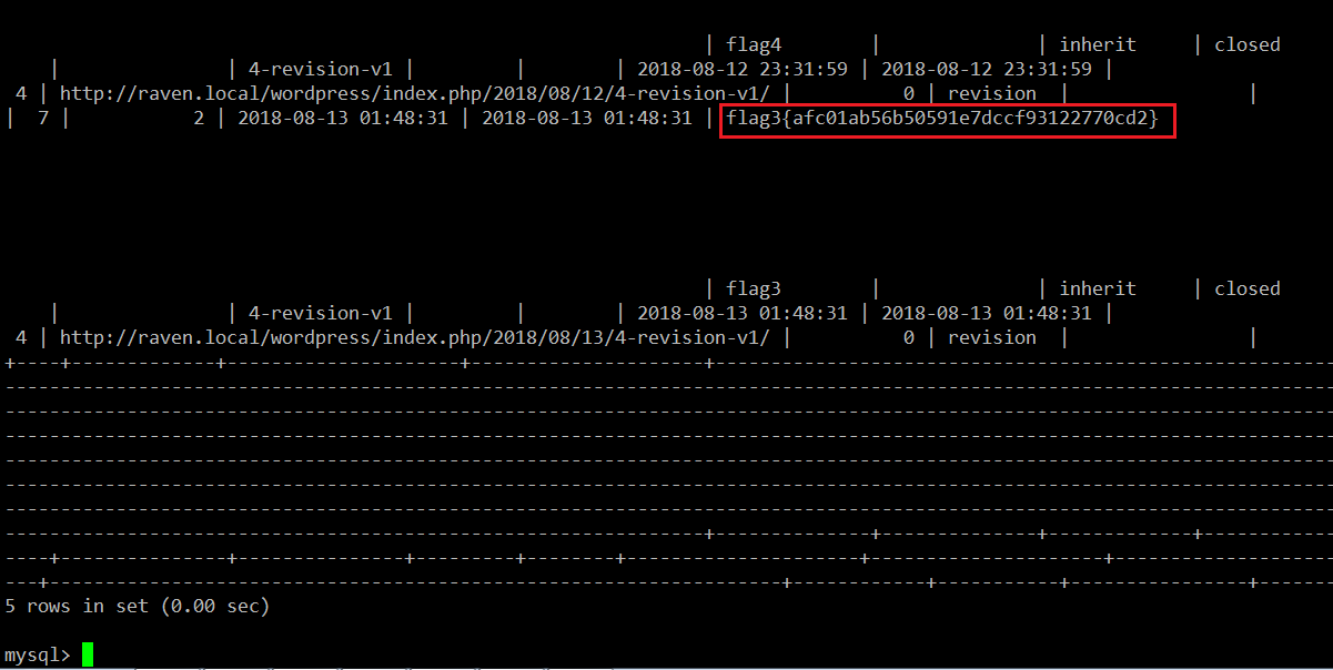 In the above screenshot, we can see the flag. Now there is only one flag left to be found. I checked all the files and directories to get the flag but could not find anything. I finally decided to check all the database tables and found the third flag smartly hiding in the blog section.