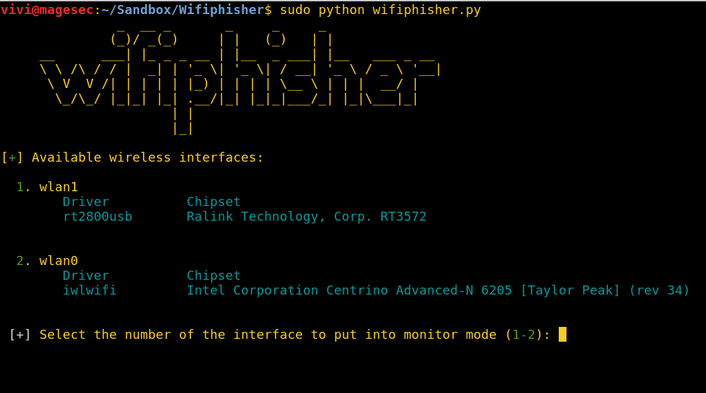 Wifiphisher is a mature tool within the wireless landscape. This tool is a rogue access point framework that creates a MiTM agent between wireless clients by performing targeted Wi-Fi association attacks.