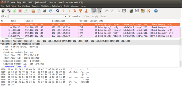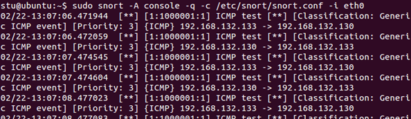 Now return to your Ubuntu Server running Snort IDS. You should see alerts generated for every ICMP Echo request and Echo reply message, with the message text we specified in the msg option: