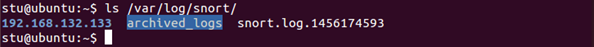 The snort.log.* file (you may have more than one if you generated more than one alert-generating activity earlier) is the .pcap log file. It cannot be read with a text editor. The IP address that you see (yours will be different from the image) is the source IP for the alert we just saw for our FTP rule. It is a directory. Let’s see what’s inside:
