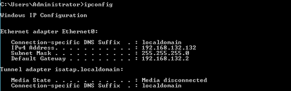 Launch your Windows Server 2012 R2 VM and log in with credentials provided at the beginning of this guide. This VM has an FTP server running on it. First, find out the IP address of your Windows Server 2102 R2 VM. You can do this by opening the command prompt from the desktop shortcut and entering ipconfig.