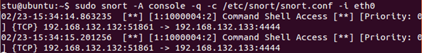 Now, let's start Snort in IDS mode and tell it to display alerts to the console: