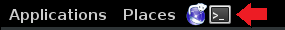 Launch your Kali Linux VM. You may need to enter startx after entering credentials to get to the GUI. Once there, open a terminal shell by clicking the icon on the top menu bar.
