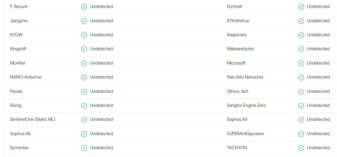 Figure 11: AV engines bypassed by Merlin agent.