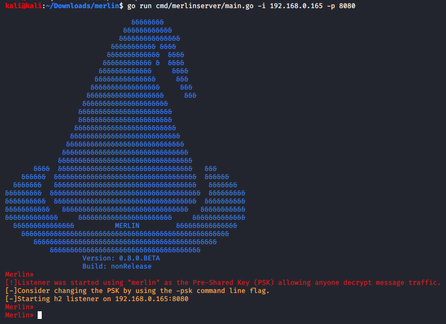 Figure 7: Starting the Merlin server with a specific IP/port.