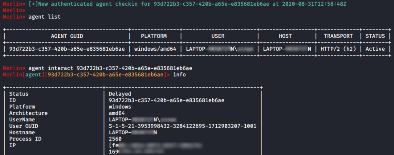 Using Merlin agents to evade detection