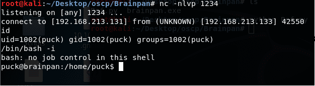 1. Below, we can see the obtained shell from Part 1. The shell is currently under user puck.