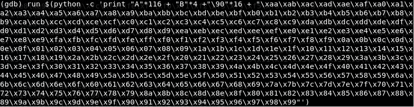 <<run $(python -c ‘print “A”*116+”B”*4+”C”*(500-116-4)’)>>