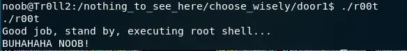 - Executing another file (r00t) in door 3 locks me out for two minutes. You can look at my struggle below.