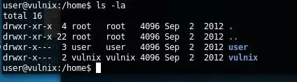 11. With that information we are able to successfully log into the box and can see another user there named Vulnix, which is a user we discovered very early. (And it was expected from the information collected above.)