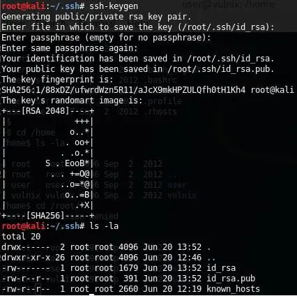 15. So now, let's create keys for this user on the Kali box, create a .ssh directory on the remote share and upload keys there.