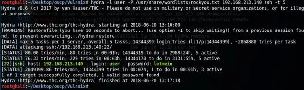 7. After running the above script we found out that user with name 'user' has logged on recently, so that might be worth trying for.