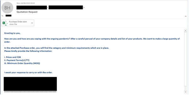 Epic Manchego has been active since June 2020, targeting companies across the globe with phishing emails containing malicious Excel documents. To bypass email spam folders and spam mechanisms, criminals are sending phishing emails from legitimate company accounts, probably obtained from public data breaches. They confirm if any emails have been compromised using the “Have I Been Pwned?” service, or simply by compromising email accounts before starting the malicious activity.