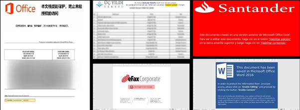 By analyzing the initial documents for targeted regions, some templates from different countries were identified, such as English, Spanish, Chinese and Turkish language-based images.