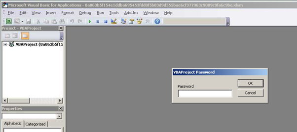 Figure 7: Password required to exhibit the VBA code inside the malicious code.