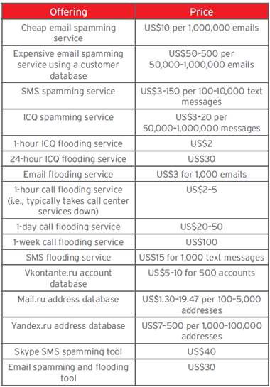 Figure 8 - Spamming and related service prices