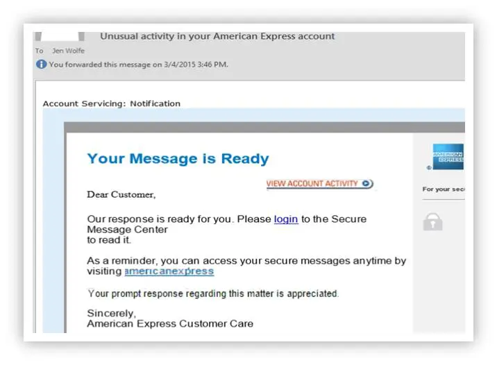 A similar story happened in the U.S. in March 2015. Some of the customers of American Express bank received an email with the subject line: "Unusual activity in your American Express card".