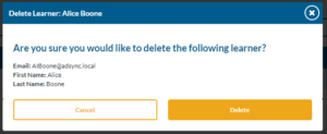 Deleting learners is a permanent and non-reversible action. Once a learner is deleted any and all data associated with that learner is also deleted