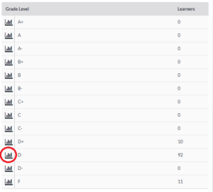 Grades are a quick way to understand the risk associated with your learners behavior in the platform. You can access grades in different ways throughout the platform. Under the Learners menu there is a quick way to view grades and generate analytical reports based on grading.
